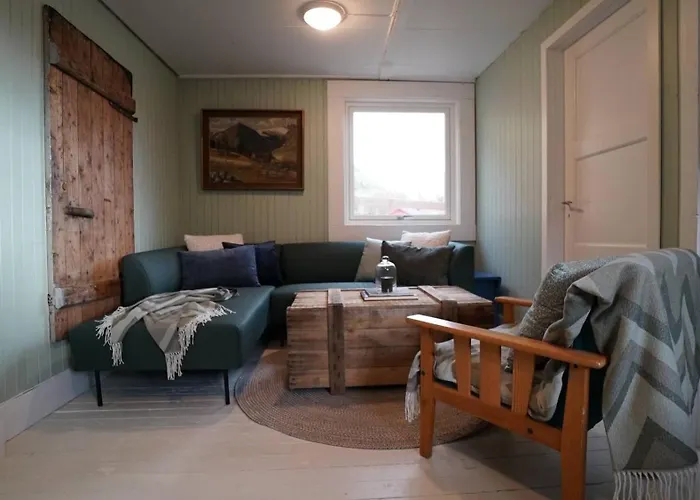 Questa villa fronte mare con 2 camere da letto è a circa 25 minuti a piedi da Skottinden.